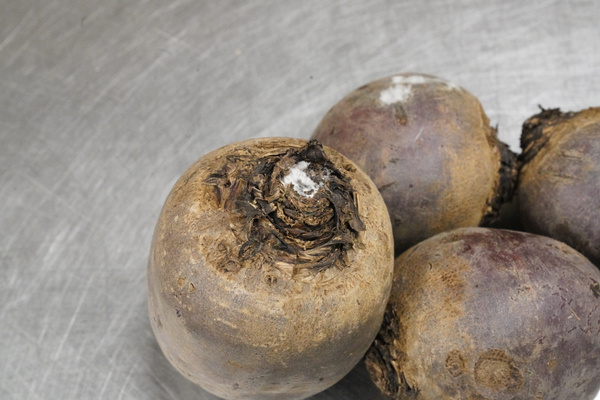 Der Schimmel dringt normalerweise nicht ins Innere der Knolle ein und lässt sich beim Schälen leicht entfernen. Die restliche Rote Bete kann bedenkenlos gegessen werden – außer die Stellen unter dem Schimmel sind weich oder matschig.