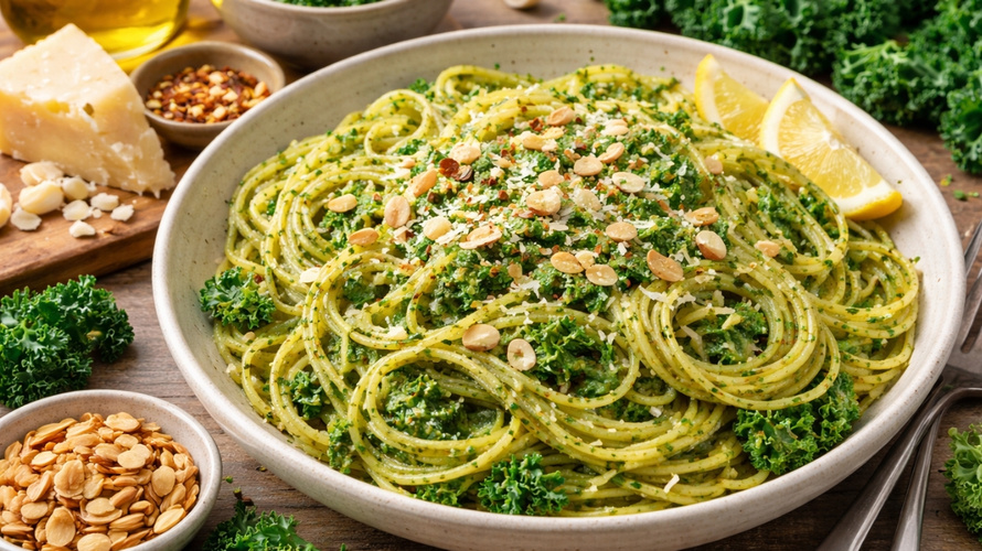Spaghetti mit Grünkohl-Pesto